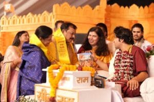 भिलाई। औद्योगिक तीर्थ नगरी भिलाई में चल रहे दिव्य हनुमंत कथा के दूसरे दिन पंडित धीरेंद्र शास्त्री जी ने हनुमान चालीसा के छठवे चौपाई “हाथ बज्र व ध्वजा विराजे” का व्याख्या करते हुए कहा की जिस प्रकार बांग्ला देश में निर्दोष हिंदुओ को मारा जा रहा है उसे देखते आज के परिदृश्य में सनातन धर्म बचाने व हिंदुओ की रक्षा के लिए ध्वज माला व भाला दोनो साथ रखना आवश्यक है। बागेश्वर पीठ हनुमंत कथा के दूसरे दिन जयंती स्टेडियम कथा स्थल परिसर में भारी संख्या में श्रद्धालु कथा श्रवण करने पहुंचे। जिसमे प्रदेश के मुख्यमंत्री विष्णु देव साय की धर्मपत्नी श्रीमती कौशल्या देवी साय, भाजपा राष्ट्रीय उपाध्यक्ष सुश्री सरोज पाण्डेय,