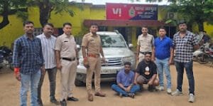 शुक्रवार को पुलिस को मुखबिर से सूचना मिली कि 2 व्यक्ति अवैध मादक पदार्थ हेरोईन (चिटटा) लेकर खुर्सीपार से शंकर नगर जामुल की ओर अपने चार पहिया वाहन सिल्वर रंग की डस्टर कार से जा रहे हैं। जैसे ही पुलिस को यह सूचना मिली तत्काल पुलिस अधीक्षक को अवगत कराने पर त्वरित कार्यवाही हेतु दिये गये निर्देशानुसार अतिरिक्त पुलिस अधीक्षक सुखनंदन राठौर (शहर), नगर पुलिस अधीक्षक छावनी हरीश पाटिल, उप पुलिस अधीक्षक (क्राईम) हेम प्रकाश नायक के मार्गदर्शन में थाना प्रभारी जामुल निरीक्षक कपिल देव पाण्डेय एवं निरीक्षक तापेश नेताम प्रभारी ACCU के नेतृत्व में थाना जामुल एवं ACCU की संयुक्त टीम गठित कर रवाना किया गया। मुखबीर द्वारा बताते हुलिये के अनुसार एस एस अस्पताल शंकर नगर, थाना जामुल अंतर्गत सिल्वर रंग की डस्टर कार क्रमांक CG 10 NC 9998 को रोककर चेक करने पर 02 व्यक्तियों के पास से मादक पदार्थ हेरोईन (चिटटा) एवं चिटटा बिक्री हेतु इलेक्ट्रानिक तराजू एवं वाहन में रखा चाकू बरामद किया गया।