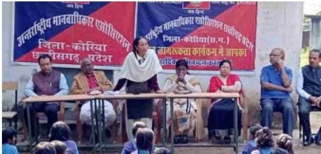 चिरमिरी अंतरराष्ट्रीय मानवाधिकार एसोसिएशन जिला एम.सी.बी छत्तीसगढ़ के तत्वाधान मे विश्व मानवाधिकार दिवस के पूर्व संध्या पर शासकीय पूर्व माध्यमिक शाला कुरसियां गोदरीपारा चिरमिरी मे मानवाधिकार दिवस बड़े हर्ष उल्लास के साथ मनाया गया । कार्यक्रम मे मुख्य वक्ता के रूप में श्रीमती पुष्पा गुलकरी एडवोकेट बच्चों को गुड टच और बेड टच, बंधुवा मजदूरी, बाल श्रम, मोटर व्हीकल एक्ट, यातायात के नियम बतलाएं तथा सुश्री सरनजीत कौर पूर्व किशोर न्याय बोर्ड सदस्य बच्चों को बाल न्यायालय, किशोर न्याय बोर्ड एवं नाबालिक बच्चों से भिक्षा मंगवाना कानूनी आपराधिक है इस संबंध मे जानकारी दी