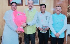 भिलाई। छत्तीसगढ़ के महामहिम राज्यपाल रमेन डेका से बुधवार को राजभवन में वैशाली नगर के विधायक रिकेश सेन ने सौजन्य भेंट कर उन्हें वैशाली नगर स्थित लोकांगन परिसर में स्थापित मां दुर्गा की पूजा-अर्चना के लिए आमंत्रित किया। राज्यपाल ने सहर्ष निमंत्रण स्वीकार करते हुए सपरिवार लोकांगन वैशाली नगर आने की स्वीकृति प्रदान की है।
