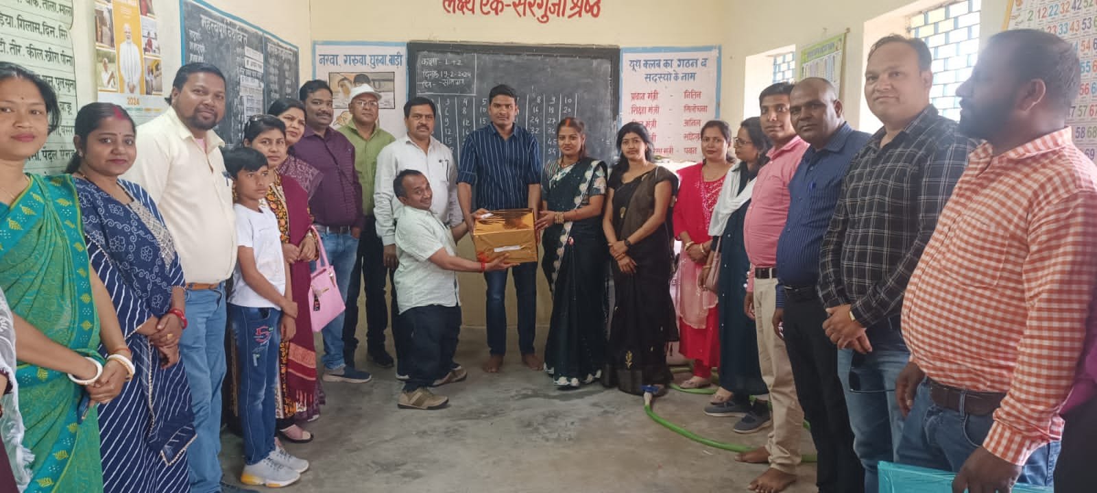 मनेन्द्रगढ़ जिला एम,सी,बी,शासकीय प्राथमिक शाला गिद्धडाँड़ में ,,न्योता भोजन”कार्यक्रम के अंतर्गत विद्यालय में पदस्थ किशन कश्यप सहायक शिक्षक द्वारा अपने विबाह के उपलक्ष्य में विद्यालय के समस्त बच्चों सहित विकासखंड शिक्षा अधिकारी मनेन्द्रगढ़ सुरेन्द्र जायसवाल सर, आमखेरवा के बाल रोग विशेषज्ञ डॉ पी के सिंह संकुल प्राचार्य कलीराम श्रीवास् शैक्षिक समन्वयक लेदरी,डॉ ए सी झा झगराखण्ड के समन्वयक कंचन सिंह विवेक सिंह समन्वयक,बरकेला विद्यालय के प्रधान पाठक संतोस कुमार गुप्ता सहित अन्य गणमान्य शिक्षकों में पवन दुबे,श्रीमती राकेश्वरी, श्रीमती गुंजन शर्मा,श्रीमती पावर्ती मरकाम,श्रीमती अन्नपूर्णा जायसवाल, श्रीमती कंचन सिंह,श्रीमती हेमप्रभा यादव, हरिदास सिंह, रवि पटेल, योगेश जाय सवाल,श्रीमती शांति सिंह,श्रीमती अर्चना अग्रहरि, नवनीत जायसवाल, ठाकुर सर की गरिमामयी उपस्थिति में नवदम्पति द्वारा सभी बच्चों को विशेष भोजन कराने के उपरांत फल एवं मिठाई वितरित किया गया। कश्यप सर की पत्नी,शिक्षिका,के द्वारा भी बच्चों को टॉफी वितरित किया गया,प्रांगण में संचालित आंगनबाड़ी कार्यकर्ता श्रीमती सिंह ,सहायिका एवं सफाईकर्मी का विशेष सहयोग रहा।