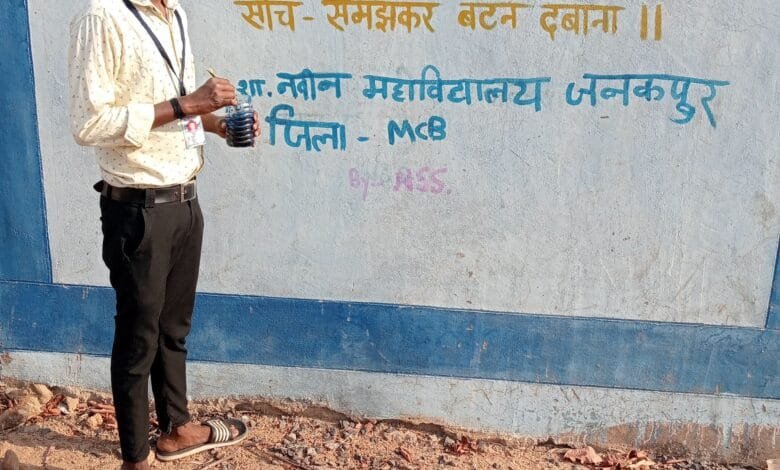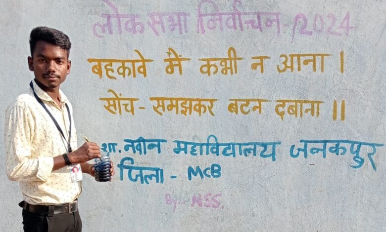 मनेन्द्रगढ़ जिला एम,सी,बी इस भीषण गर्मी में भी शा.नवीन महाविद्यालय, जनकपुर के छात्र पहले मतदान फिर जलपान,हम सबकी जिम्मेदारी वोट…