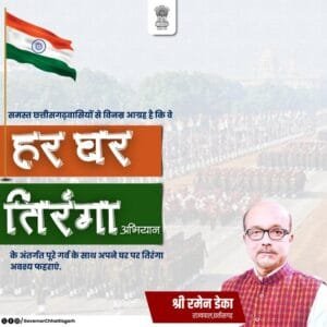 । राज्यपाल रमेन डेका ने सभी नागरिकों से हर घर तिरंगा अभियान में उत्साह से भाग लेने की अपील की है। उन्होंने देश व प्रदेश के नागरिकों से आग्रह किया है कि अपने घरों में तिरंगा फहराएं और स्वतंत्रता दिवस को सम्मान व गर्व के साथ मनाएं।