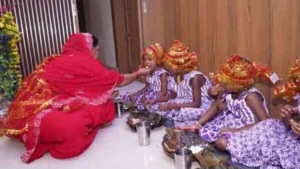 जशपुर। दुर्गा अष्टमी के पावन अवसर पर सीएम निवास बगिया में नव कन्या पूजन का आयोजन किया गया। इस विशेष अवसर पर छत्तीसगढ़ के मुख्यमंत्री की धर्मपत्नी कौशल्या साय ने श्रद्धा भाव से नव कन्याओं का पूजन किया और उन्हें भोजन कराया।