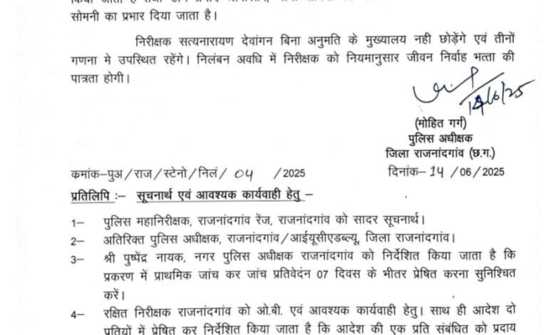 राजनांदगांव। राजनांदगांव में रेत माफियाओं के साथ गठजोड़ रखने वाले थानेदार को एसपी ने सस्पेंड कर दिया है। एसपी की…