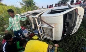 तेज रफ्तार पिकअप के पलटने से 25 लोग घायल, 4 की हालत नाजुक