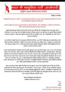 नक्सलियों के संगठन ने प्रेसनोट जारी कर दी जानकारी