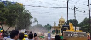 आखिरकार चल ही गया मजार के सामने अवैध रूप से बनी दुकानों पर निगम का बुलडोजर