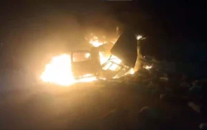 बलौदा बाजार। रायपुर-बलौदा बाजार हाईवे पर सोमवार को एक दर्दनाक सड़क हादसा हुआ, जिसमें दो ट्रक और एक सवारी गाड़ी के बीच जोरदार टक्कर के बाद भीषण आग लग गई। हादसा संडी और कोदवा के बीच पलारी थाना क्षेत्र में हुआ। टक्कर इतनी जोरदार थी कि सवारी गाड़ी और एक ट्रक में आग लग गई, जिससे एक व्यक्ति की मौके पर ही जलकर मौत हो गई, जबकि तीन लोग गंभीर रूप से झुलसकर घायल हो गए। घायलों को स्थानीय लोगों की मदद से तत्काल अस्पताल पहुंचाया गया।