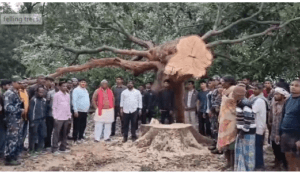 पेड़ों की धडल्ले से हो रही कटाई से आक्रोशित ग्रामीण धरने पर बैठे