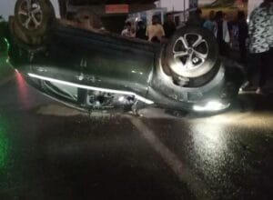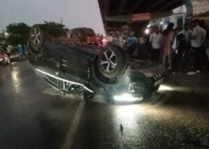 तेज रफ्तार कार अनियंत्रित होकर पलटी, 3 लोग घायल
