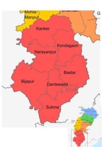 बस्तर संभाग में कुल 7 जिले हैं: बस्तर, दंतेवाड़ा, बीजापुर, सुकमा, नारायणपुर, कोंडागांव और कांकेर। इनमें से बस्तर और कोंडागांव को अब LWE सूची से बाहर कर दिया गया है। इसके अलावा, राजनांदगांव, कवर्धा और खैरागढ़-छुईखदान-गंडई जिलों को भी सूची से हटाया गया है।