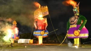 रायपुर। छत्तीसगढ़ में दशहरा पर्व की धूम पूरे राज्य के साथ राजधानी रायपुर में भी देखने को मिली, जहां बुराई के प्रतीक रावण के पुतले का भव्य दहन किया गया। रायपुर के WRS मैदान में आयोजित इस भव्य कार्यक्रम में 101 फीट ऊंचे रावण के पुतले का दहन हुआ, जिसमें मुख्यमंत्री विष्णुदेव साय मुख्य अतिथि के रूप में उपस्थित थे।