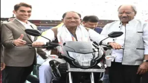 सीएम विष्णुदेव साय ने हेलमेट लगाकर बाईक चलाते हुए प्रदेशवासियों को हेलमेट लगाने और यातायात के नियमों का पालन करने का दिया संदेश