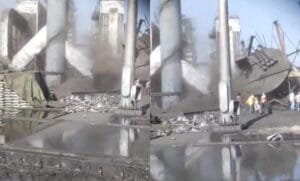 निर्माणाधीन लोहा प्लांट की चिमनी गिरी, दो दर्जन से ज्यादा मजदूरदबे