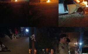 नशे में धुत्त कार चालक युवक ने बरपाया कहर, आग लगने से कार जलकर हुई खाक