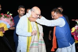 तीन दिवसीय रायपुर प्रवास पर पहुंचे गृहमंत्री अमित शाह का किया गया भव्य स्वागत
