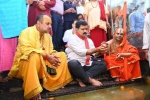 पेंड्रा। छत्तीसगढ़ के उप मुख्यमंत्री और गृहमंत्री विजय शर्मा अमरकंटक पहुंचे। सावन के चतुर्थ सोमवार पर अमरकंटक में जलेश्वर महादेव मंदिर में पूजा-अर्चना कर प्रदेशवासियों की सुख-समृद्धि और खुशहाली की कामना की। मंदिर प्रांगण में उपस्थित कांवड़ियों शिवभक्तों से भेंट कर शुभकामनाएं दी।
