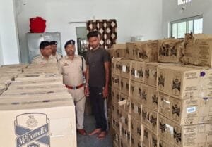 जशपुर। जशपुर जिले की पुलिस ने एक कंटेनर से 66 लाख रुपए कीमत की 734 पेटी अवैध अंग्रेजी शराब के साथ राजस्थान के चिमा राम को गिरफ्तार किया है। पुलिस के मुताबिक बड़े अंतरराज्यीय सिंडिकेट की शामिल होने की संभावना जताई जा रही है। पुलिस इस मामले में गहन जांच कर रही है।