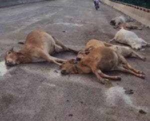 मौके पर ही सभी मवेशियों की मौत हो गई। वहीं घटना सीसीटीवी कैमरे में कैद हो गई। फिलहाल पुलिस मामले की जांच में जुट गई है।
