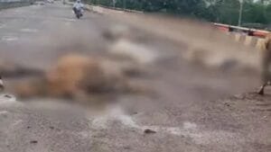 शिवनाथ पुल पर बस 9 मवेशियों को रौंदा