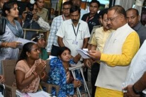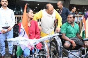रायपुर । मुख्यमंत्री विष्णुदेव साय ने आज निवास कार्यालय में आयोजित जनदर्शन कार्यक्रम के दौरान समाज कल्याण विभाग द्वारा तीन दिव्यांगों को बैटरी चलित मोटराइज्ड ट्राई साइकिल प्रदान की। इस अवसर पर दिव्यांग कोमल लहरे, सना परवीन, और ठगिया साहू ने मुख्यमंत्री श्री साय का आभार व्यक्त किया।