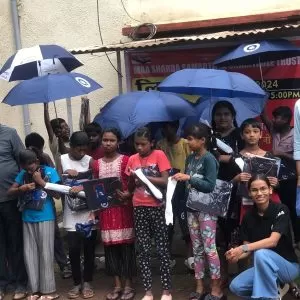 माँ शारदा सामर्थ्य चैरिटेबल ने स्कूली बच्चों को टी-शर्ट और छतरी का किया वितरण