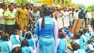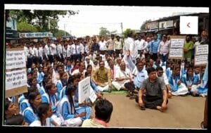 विधायक ने स्कूली बच्चों साथ सड़क पर दिया धरना