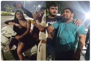 नाइट क्लब के बाहर नशे में धुत युवकों और युवतियों के बीच हुई मारपीट