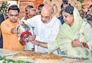 गृहमंत्री अमित शाह ने पत्नी सोनल के साथ किए महाप्रभु वल्लभाचार्य के दर्शन