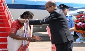 राष्ट्रपति द्रौपदी मुर्मू का राज्यपाल रमेन डेका और सीएम साय ने किया स्वागत
