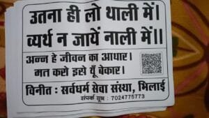 संस्था ने सभी से भोजन न बर्बाद करने , भोजन बर्बाद करने वालों को टोकने के साथ साथ विवाह निमंत्रण पत्र व सामाजिक व धार्मिक निमंत्रण पत्रों में शलोकों – सलोगन के अलावा [उतना ही लो थाली में, व्यर्थ न जाये नाली में] ये सलोगन लिखवाने की अपील की है ताकि सभी के प्रयास व सहयोग से अन्न की बर्बादी को कम किया जा सके।