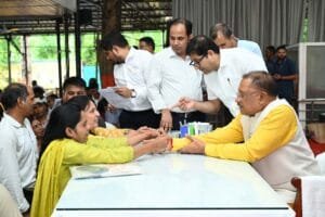 रायपुर। मुख्यमंत्री जनदर्शन में मुख्यमंत्री विष्णु देव साय से मिलने दो बहनें आईं। उन्होंने कहा कि रक्षाबंधन से पहले जनदर्शन में आए हैं इसलिए पहले राखी बांधेंगी। रिशी अग्रवाल और सिद्धका गोस्वामी बिलासपुर और बेमेतरा से मुख्यमंत्री के लिए राखी लेकर आई थी। उन्होंने मुख्यमंत्री को राखी बांधी। रिशी ने बताया कि उनके पिता डॉ जे पी वर्मा शासकीय महाविद्यालय बिलासपुर में प्रोफेसर के पद पर थे। उनका निधन हो गया उन्हें अनुकंपा नियुक्ति उनकी शिक्षा के मुताबिक मिले तो अच्छा लगेगा और उन्होंने तृतीय श्रेणी के पद के लिए आग्रह किया।