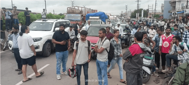 रायपुर l मुंबई-हावड़ा हाईवे पर करीब 2 किलोमीटर लंबा जाम लग गया है. ये जाम कोई ट्रैफिक समस्या के वजह से नहीं है, बल्कि जलभराव से परेशान कॉलोनीवासियों के परिवार के साथ धरने पर बैठने की वजह से लगा है. हैरानी की बात यह है कि इस चक्काजाम की भनक तक जिला प्रशासन को नहीं है, जिसके कारण ट्रैफिक जाम का दायरा बढ़ता जा रहा है. काली माता मंदिर के पास लोग सड़क पर बैठ गए है और इस रूट के दोनो तरफ गाड़ियां खड़ी हो गई है. हालांकि वहां जाम की सस्या को देखते हुए कुछ ट्रैफिक पुलिस के जवान पहुंचे है और उन्होंने अपने आला अधिकारियों को चक्काजाम किए जाने की जानकारी दे दी है.