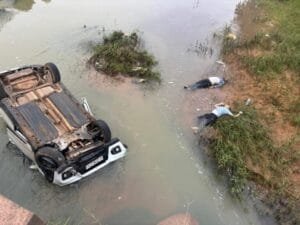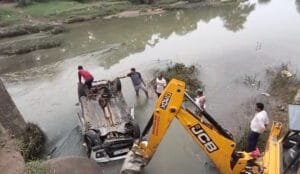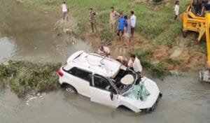 टायर फटने ने तेज रफ्तार कार नाले में गिरी, 2 लोगों की मौत 3 गंभीर रूप से घायल