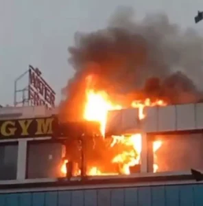 रायपुर। राजधानी रायपुर के तेलीबांधा तालाब के सामने एक जिम में बुधवार सुबह भीषण आग लग गई. वहां से गुजर रहे लोगों ने GOLD’s GYM में धुंआ उठते देखा. जिसके बाद फायर ब्रिगेड को सूचना दी गई. मौके पर पहुंचकर फायर फाइटर्स ने आग पर काबू पाया. घटना से इलाके में हड़कंप मच गया. घटना तेलीबांधा थाना क्षेत्र की है.